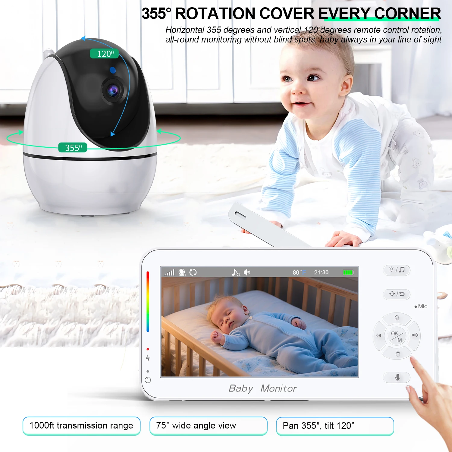 4.3-Inch Baby Video Monitor with 4x Zoom Camera Motion/Sound Detection Soft Night Light & Dual Control (APP + Wireless Monitor)